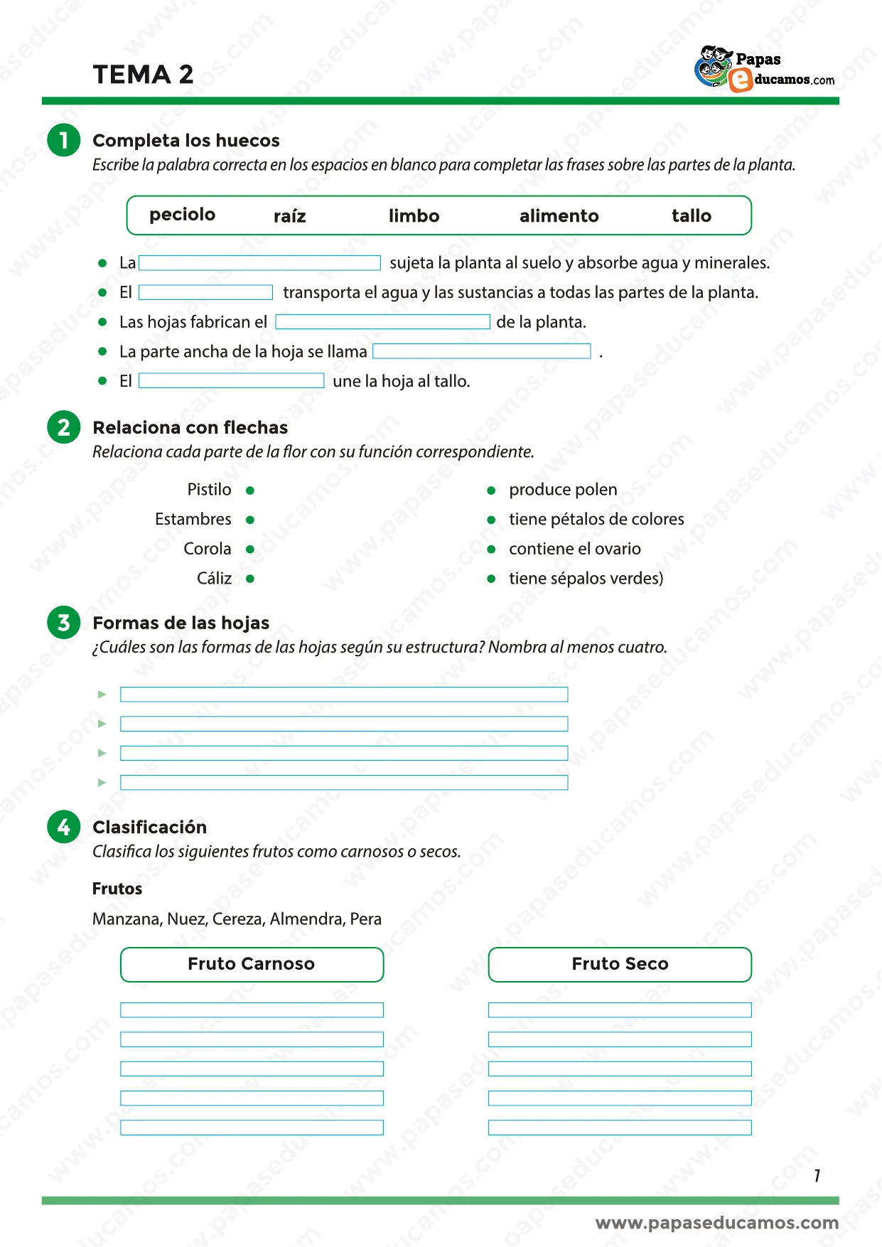 - Partes de la planta: «Ejercicios para identificar raíz, tallo, pecíolo, limbo y su función en la planta.»