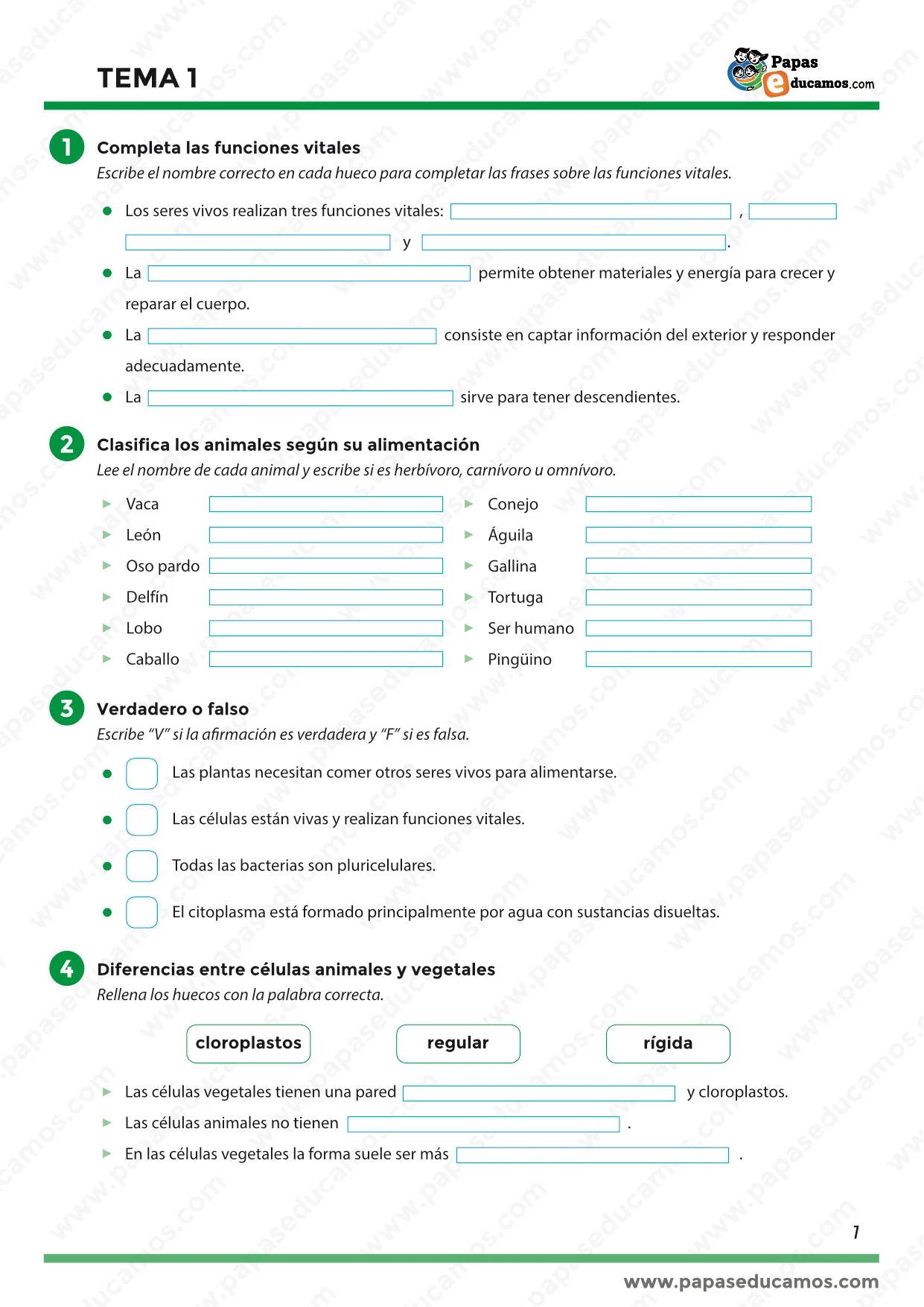 Actividades para reconocer cómo los seres vivos se nutren, se relacionan con su entorno y se reproducen. Los alumnos aprenden, por ejemplo, por qué los animales comen, cómo las plantas fabrican su alimento y de qué manera se perpetúa la vida.