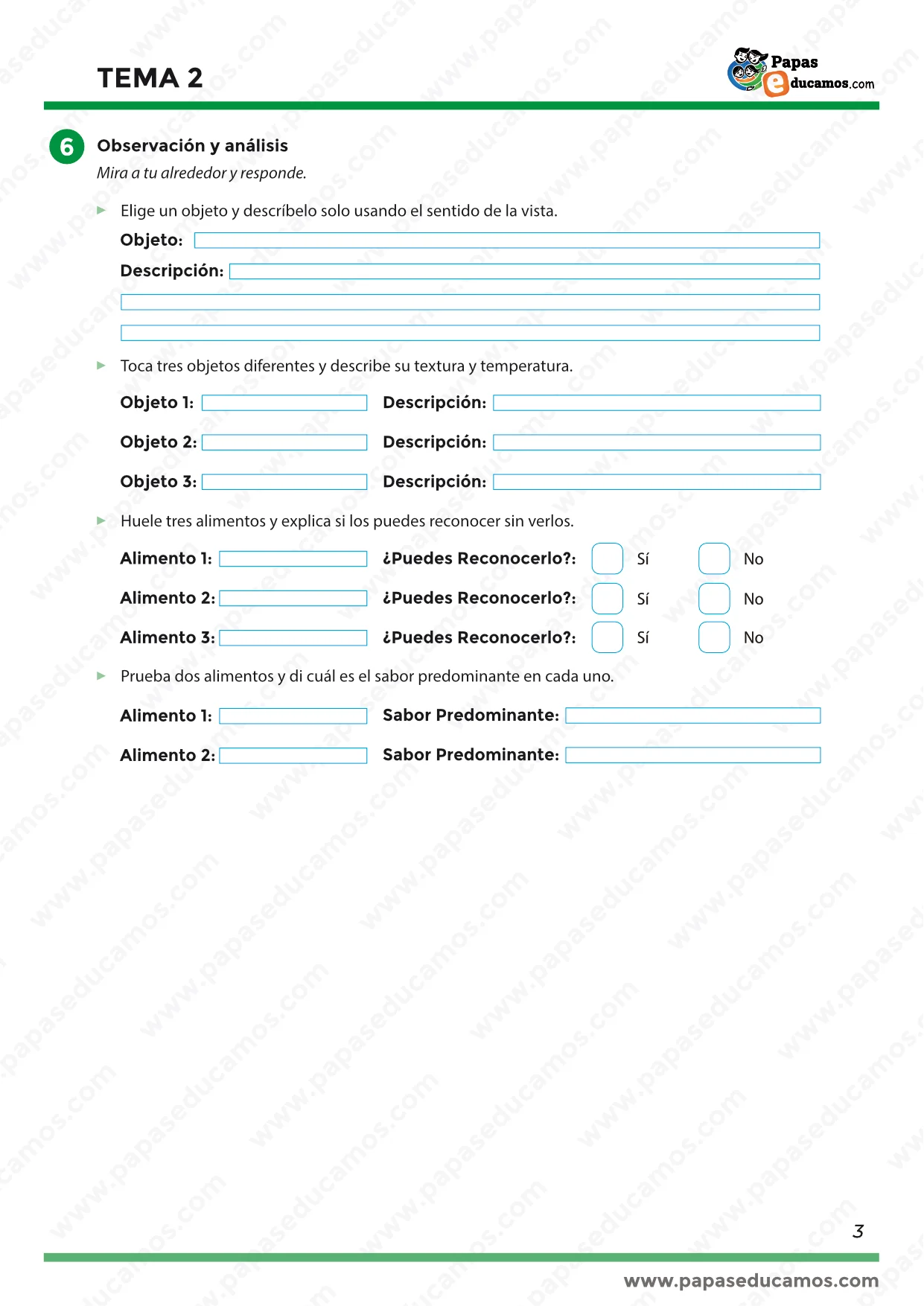 Ejercicios prácticos para observar objetos con diferentes sentidos, reconocer olores y sabores, y comprender cómo el cerebro interpreta la información que recibe.