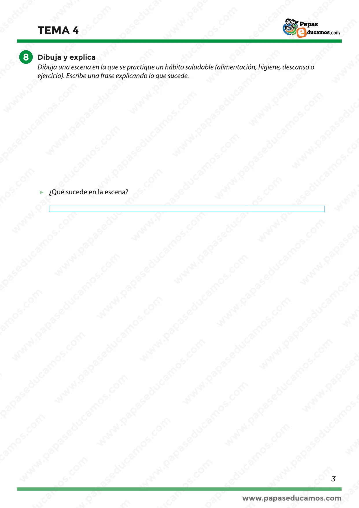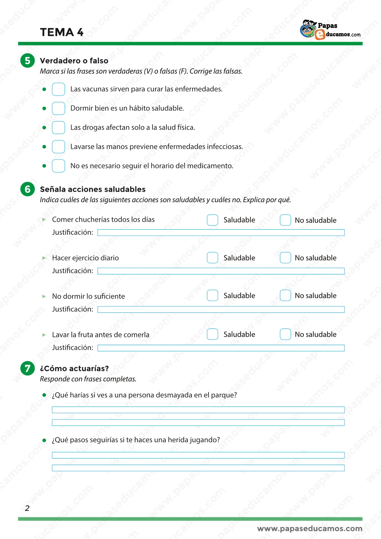 En este tema, los alumnos aprenden qué es la salud y cómo cuidarla a través de acciones sencillas del día a día. Comprenden que estar sano implica cuidar el cuerpo, las emociones y la forma en que se relacionan con los demás.