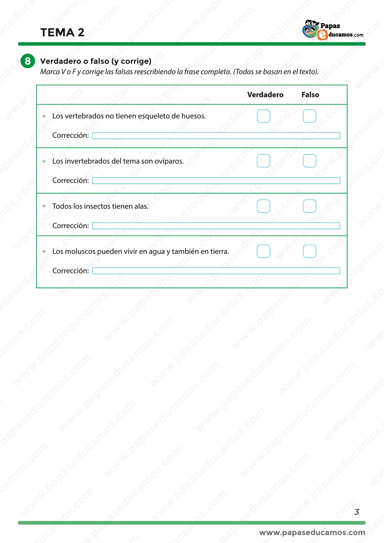 - Verdadero o falso: repaso divertido para comprobar lo aprendido sobre los hábitos y características de diferentes especies.