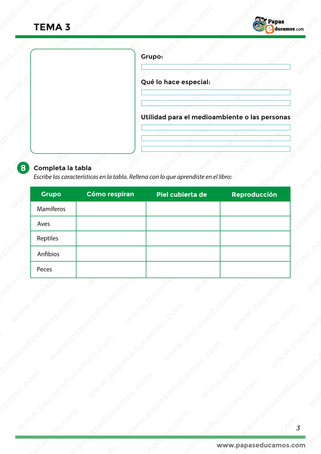 - Síntesis final: tabla para completar con las características básicas de cada grupo de vertebrados.
