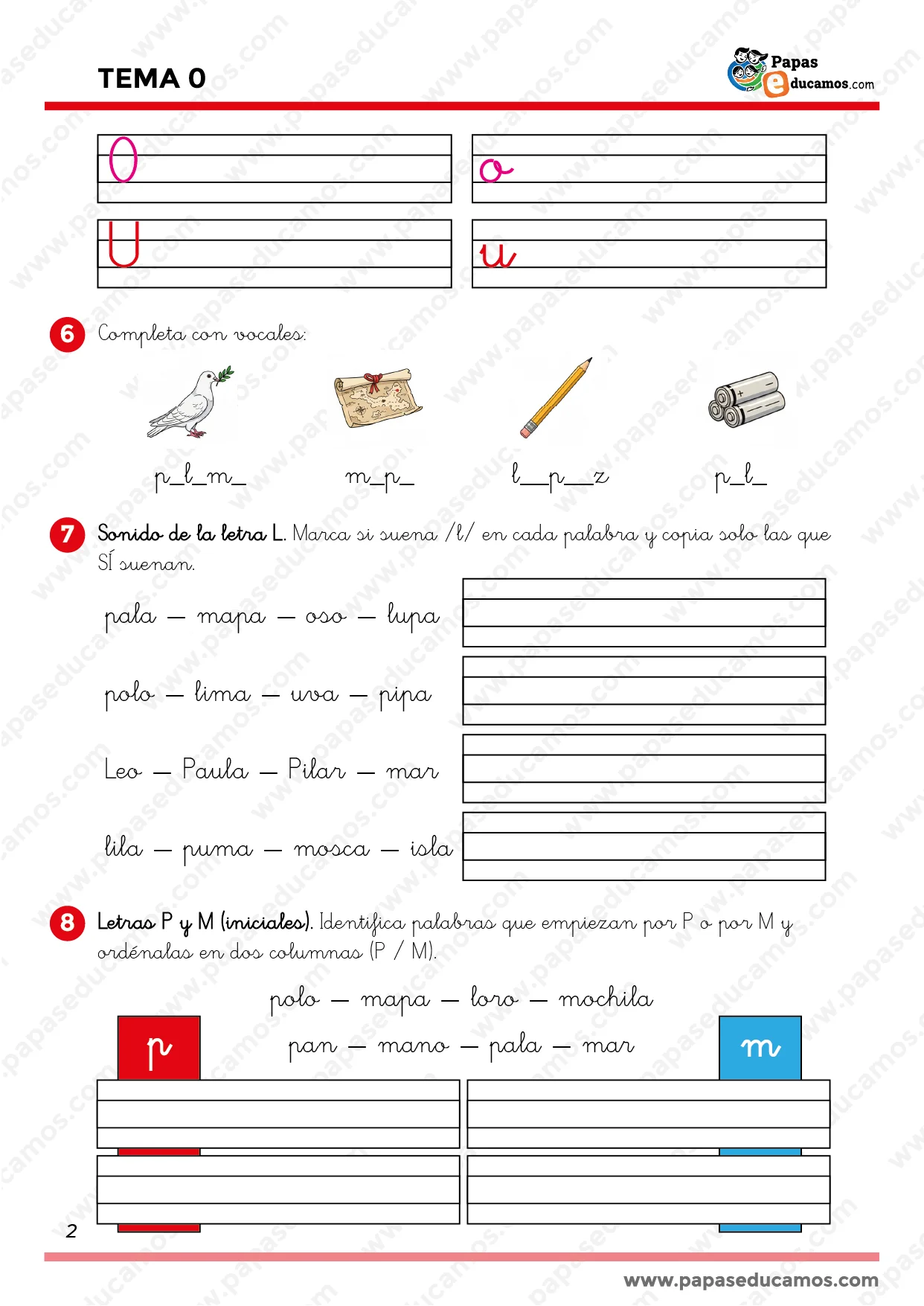 - Reconocer el sonido /l/ y las letras P y M en palabras comunes.