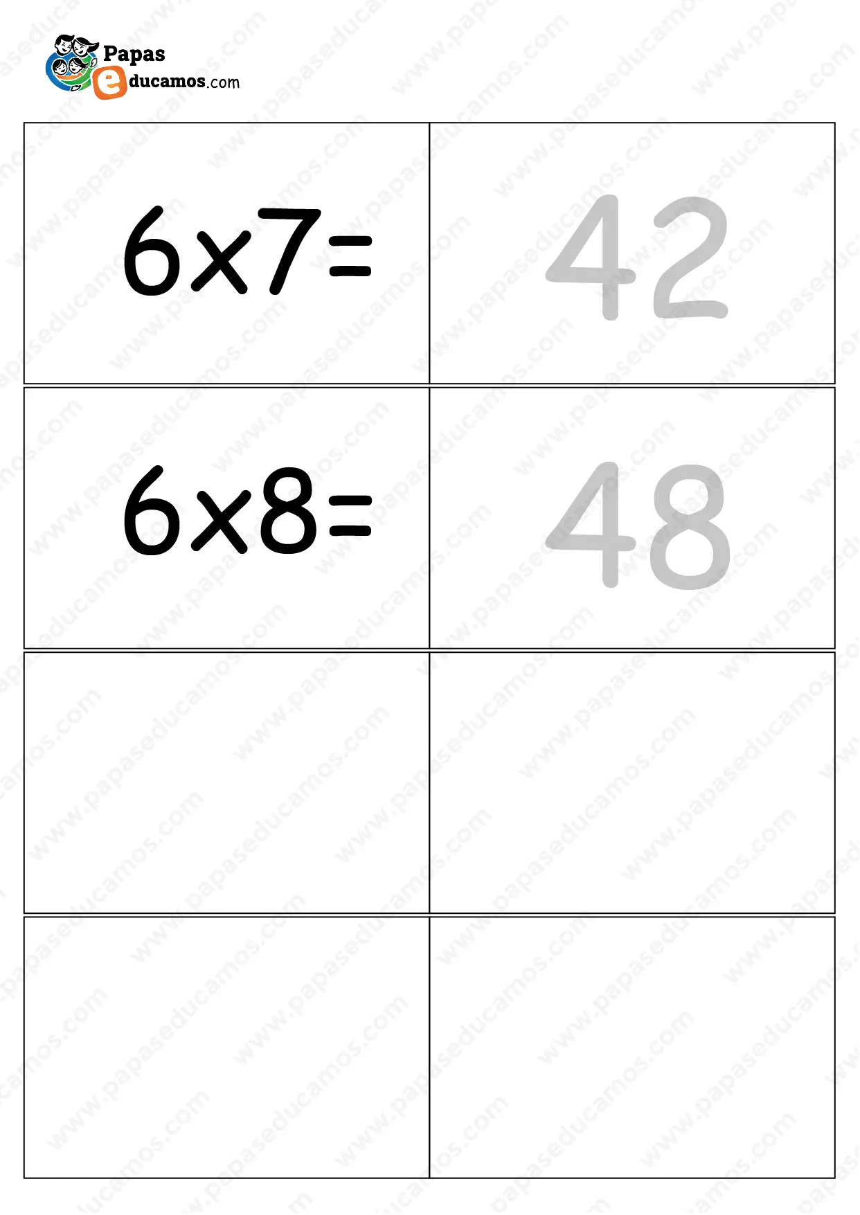 Además, incluimos varios tarjetones en blanco para que los niños puedan escribir sus propias multiplicaciones según lo que necesiten reforzar. Así pueden crear nuevas tarjetas a medida que avanzan y seguir practicando justo aquellas operaciones que aún no dominan.
